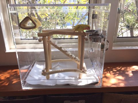 透明な壁、ジムもどう動いていいのか分からない…。餌を食べてる写真にホッとしてます。