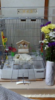 退院した翌日は、マイコちゃんは、やたらビービー鳴いていて、家に帰れたのがよほど嬉しかったのでしょう。鳥さんは賢く、人の3歳児くらいの知能があり、飼い主の顔が分かるそうですね。