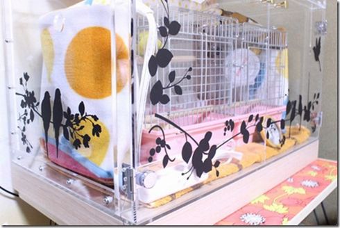 キャリーバッグの中で、密封されて、前の方はタオルを被せ、中央部分のみを開けて、上から電気毛布をかけて寝かしていました。