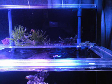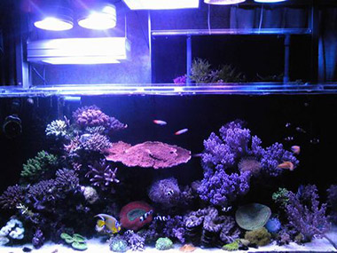 2012年1月 P130 香川県 タツノオトシゴ コンパクトな水槽の製作 W620×D150×H220 2012年は辰年。タツノオトシゴさんが入ってます↑ 画像左の、サンゴの陰 深みのあるブルーの海水魚水槽