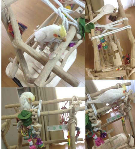 毎朝、起きてから出勤前まで放鳥しているのですが、私が朝食を食べている時には、バードジムで一人で遊んでくれているのでとても助かっています。