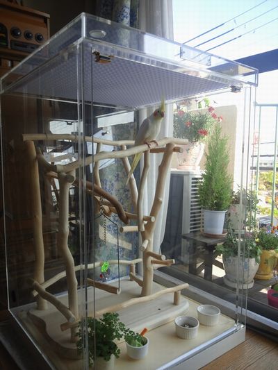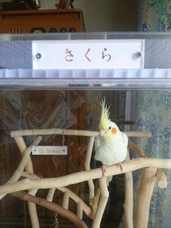 さくらちゃん、ご家族がいらっしゃるときは、肩にいるか、近くのテーブルの上や、バードジムで遊んでいるそうです。