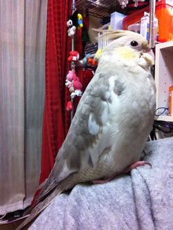 最初は、オカメ飼育経験者の旦那のほうに寄り着いていましたが(カキカキが上手い?)、最近はめっきりあたしの方に寄ってくるようになったので、旦那は拗ねています(笑)