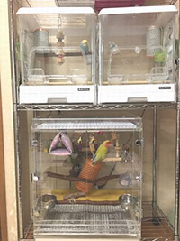 このようにずっーとセキセイたち、しろたんとゆすたんが、るるちゃんから離れないので、アクリルゲージになってから、本当に安心して、セキセイ達を放鳥できます。
