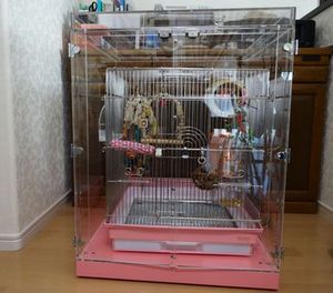 日光浴にケージだけ移動は、ゴミの舞い上がり、鳥の羽繕いも気になってしまうもの・・・