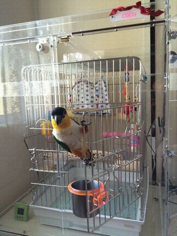 お迎えが4月でそれから家で、クシャミ連発して病院にかかったので、寒さがとても心配だったのです。まだ幼鳥なので、今は温度管理(25℃)をキープするためにケースを選びました。