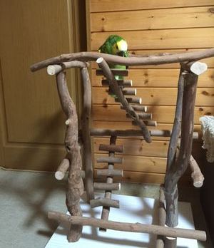 アオボウシインコのアオちゃんは早速バードジムで遊んでいます。