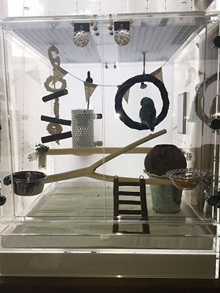 追加したハシゴと、トレイに敷いた干し草、自然の香りに満ちています。