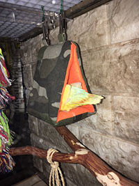 ヒーター設置用金具:左側面の奥。止まり木とダブる時は右に短い止まり木