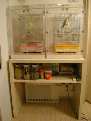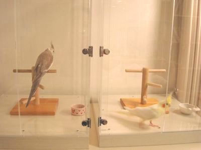 鳥かごのお掃除中?