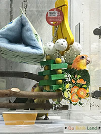 おもちゃとバードテント、鳥さんたちにとって素敵な空間になっていますね。