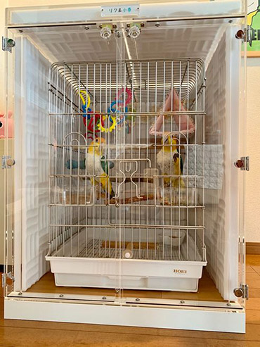 おかげさまで鳥たちも、アクリルケースに慣れ、気になっておりました2羽の大きな鳴き声も、ケースに入れる前に比べますと、1/3ほどになりました。