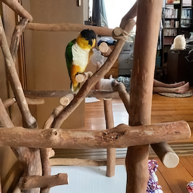 大きなジムで、一本の枝がある自然木が中心にあり、自然に近い形で過ごせているのでは、と思っています。