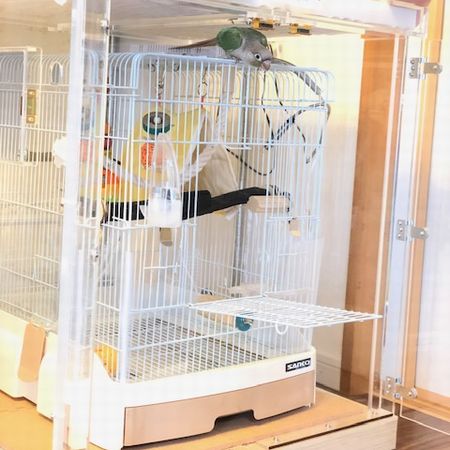 ケースとカゴの扉を開放して、鳥さんが自由に行き来。