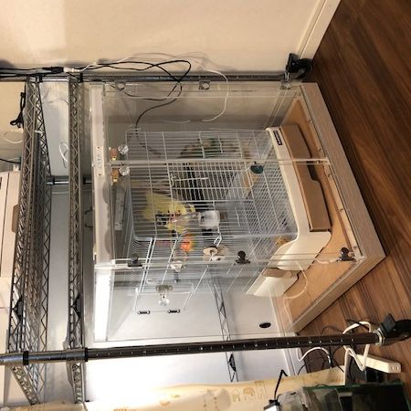 もともと、うちにはウロコインコとシモフリインコが一羽ずついましたが、シモフリを新たにお迎えするに当たって、先住の二羽をメタルラックで上下に住まわせることにしました。