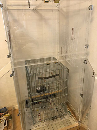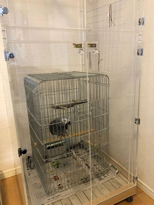 昨年製作いただいたケースに、やっと家主(びびちゃん ヨウム23歳)が来ました。