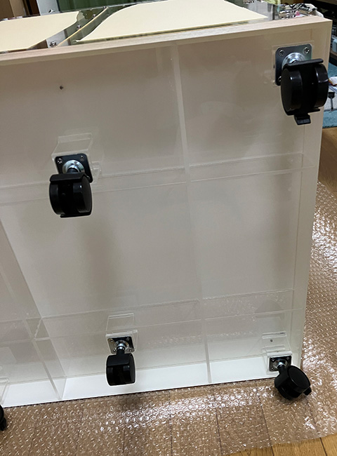 キャスターは、届きましてからお客様にて取り付けしていただいています。