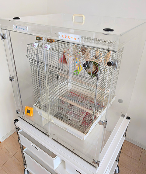 ケースと鳥さんの環境をぜひ見たくて、現在の画像を送っていただきました。