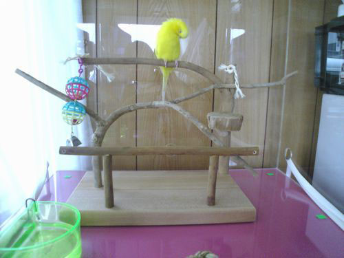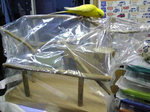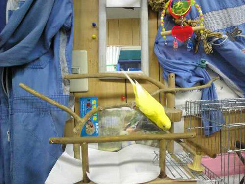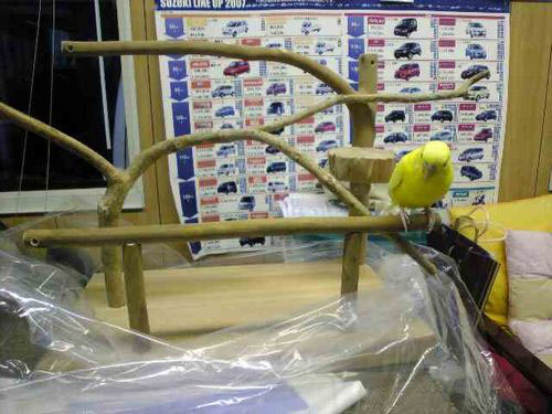2009年6月 P64 大阪府 レモンちゃん3 セキセイインコ 注文の止まり木がきました。 「何だろうこれ?」 さすがにビニールを外すと、ちょっぴり怖くなったようで。 それでも・・・おずおずと隅のほうに乗っています。 数日経つと、もうあちこち探索しています(^^♪ レモンちゃんはお店の看板鳥。お客様にもお話し、会話が弾むそうです。 立派なスタッフですね。 レモンちゃん1 P34(幼い日) レモンちゃん2 P59(ちょっと大きくなった) 2009年6月 大阪府 Mさま ありがとうございました。