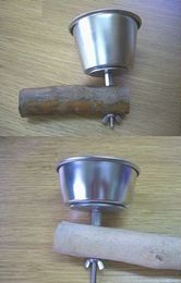 元々エサ入れの受けではないのですが、以前の自作止まり木に付けられていたそうです。