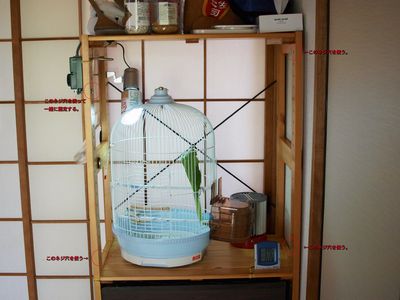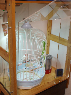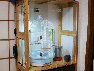 ウッドラックにアクリルパネルを付けて、鳥用の温室に。