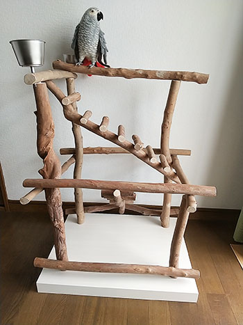 自然木を使用しています。 ヨウムなどの大型鳥さん用に。